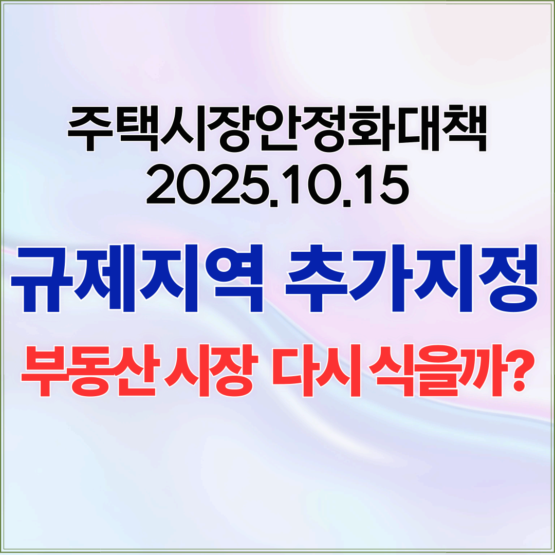 2025년 10월 15일 정부는 서울・경기 남부 일부 지역의 주택가격 급등, 과열 양상 우려에 대한 조치로 "주택시장 안정화 대책" 발표.금리인하 기조와 풍부한 유동성으로 상승압력 가시화되어 주거 안정 대책 필요서울 전역, 경기 일부 조정대상지역, 투기과열지구, 토지거래허가구역 등 규제지역 지정주담대 및 소유권 이전 조건부 전세대출 금지 등 대출 ・ 단속 강화 「 대출은 더 조이고, 거래는 더 까다롭게! '1015 부동산 대책은 '투기 수요 차단•시장 속도 조절' 」 목차규제지역은 어디?규제지역에서는 무엇이 달라지나?규제지역 유형 알아보기시장반응과 시각 규제지역은 어디? 지난 6.27 대책 발표 후 규제지역인 강남, 서초, 송파, 용산의 상승세는 축소되었으나 이미 퍼진 상승세의 온기는 규제지..
